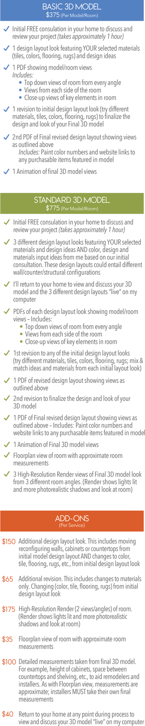3D Models created for Home Remodels and refreshes.