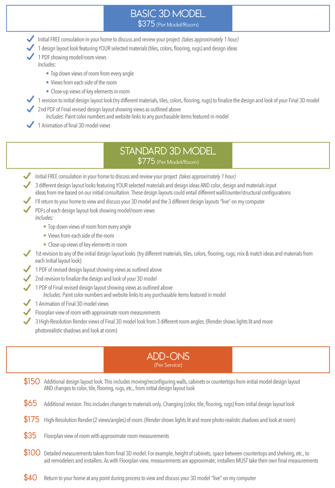 3D Models created for Home Remodels and refreshes.